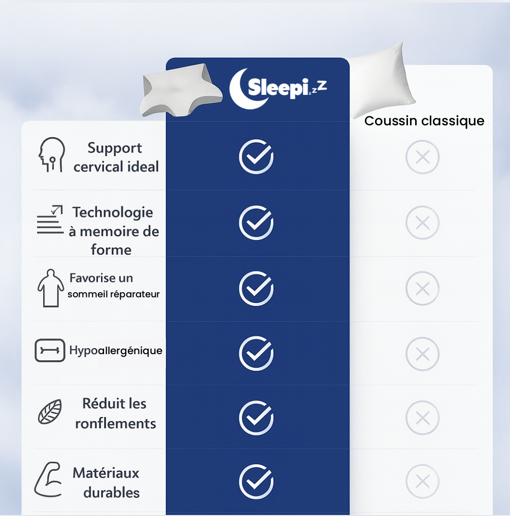 Pour vous aider à retrouver un sommeil plus profond et réparateur, cet oreiller orthopédique ergonomique a été conçu pour soutenir naturellement votre nuque et aligner votre colonne pendant la nuit.